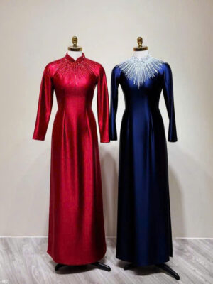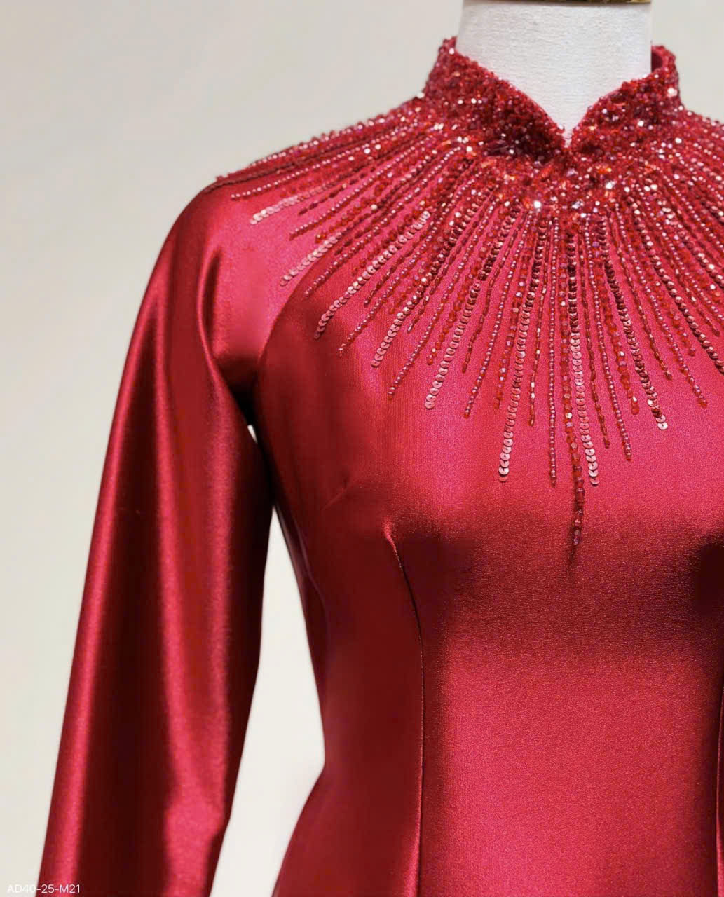 Áo Dài Bà Sui Lụa Tô Châu Kết Rơi Cổ – Đỏ Đô BS111